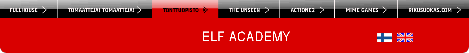 FORMAT — Elf Academy is an episodic comedy with a new sketch available on cell phones every day up until the 24th. Each episode runs roughly four to six minutes and is available in English. THE FIRST MOBILE BROADCASTING was in Finland December 2006 at Sonera mobile-tv using streaming techniques. Elf Academy was the most downloaded mobile-tv program during that month.